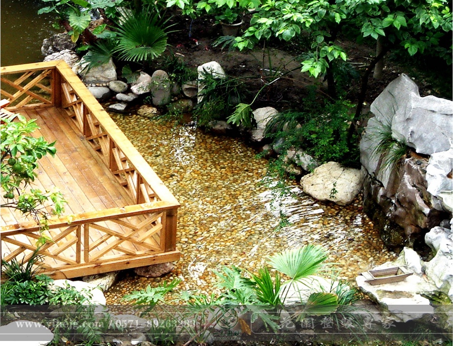 露臺花園|露臺假山水溪景觀|露臺木平臺景觀設計|私家小露臺景觀綠化